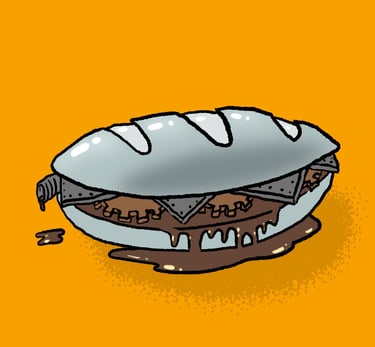 Par exemple, thème : Nourriture; sujet : Sandwich métallique (et pourquoi pas, après tout !)