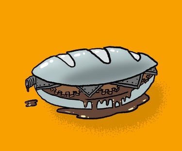Par exemple, thème : Nourriture, sujet : Sandwhich métallique (et pourquoi pas, après tout ?)